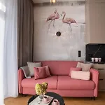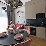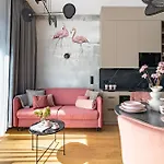Rentplanet - Apartamenty Dmowskiego lägenhet erbjuder en kokvrå samt rum med balkong, soffa och sitthörna. Lägenheten ligger 25 minuters promenad från Nya rådhuset och 10 minuters bilresa från Botaniska trädgården.
